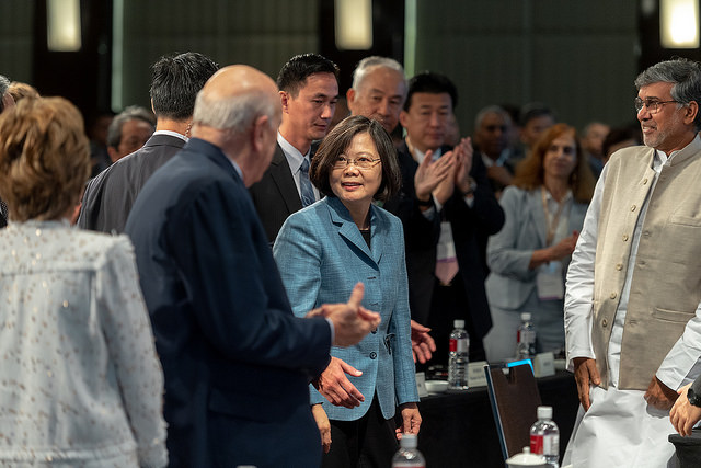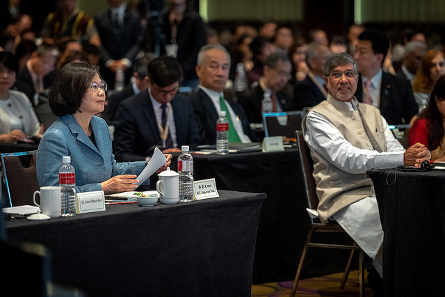 針對蕭新煌董事長帶領「臺亞基金會」肩負重任,成功舉辦此次活動,並邀請傑出的講者及與會者,總統表達感謝之意。她也特別歡迎及感謝國內外的與會貴賓,特別是南非前總統戴克拉克(Frederik Willem de Klerk)、兒童教育提倡者及2014年諾貝爾和平獎得主沙提雅提(Kailash Satyarthi)及日本國會「日華議員懇談會」會長古屋圭司的與會支持。
