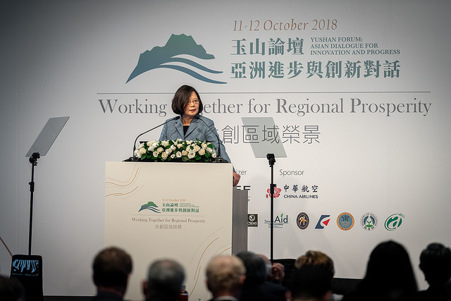 蔡英文總統今(11)日上午出席「玉山論壇開幕式」時說明,臺灣致力促進區域永續發展,展現「玉山論壇」和新南向政策的精神,「臺灣協助亞洲,亞洲協助臺灣」。