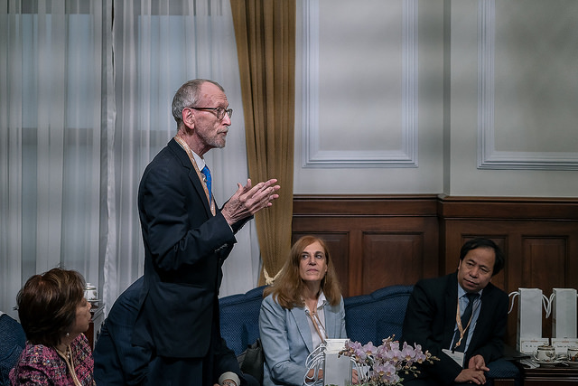 訪賓一行尚包括美國環保署首席副助理署長西田珍(Jane Nishida)、美國國防大學國際安全事務學院副院長柯夏譜(Atul Keshap)、泰國外交部前部長卡希特(Kasit Piromya)、菲律賓衛生部前部長歐納(Enrique Ona)、馬來西亞檳城州州議會議長劉子健(Law Choo Kiang)、越南國家農業科學院院長阮洪山、美國戰略暨國際研究中心中國權力計畫主任葛來儀(Bonnie S. Glaser)、美國布魯金斯研究院東亞政策研究中心李光耀東南亞研究講座主任周思哲(Jonathan Stromseth)、非政府組織聯合總會首席副會長李奇(Cyril Ritchie)、菲律賓麥格賽賽基金會會長愛貝拉(Carmencita Abella)等,由外交部次長徐斯儉、遠景基金會董事長陳唐山及總統府資政、臺灣亞洲交流基金會董事長蕭新煌陪同,前來總統府晉見總統,國家安全會議秘書長李大維也在座。