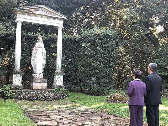 隨後副總統伉儷一行接續前往夏宮花園,並於小聖母像花園誦唸玫瑰經,為世界及台灣人民祈福。接著參訪庇護所等具宗教歷史意義之景點,感念當年二次大戰期間,教宗庇護十二世將夏宮開放作為附近居民避難所的人道精神。