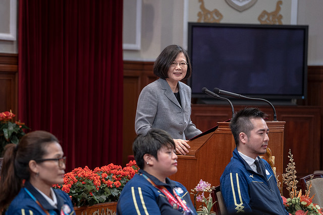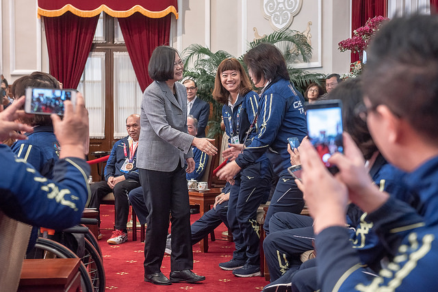 總統也感謝代表團的隊醫、防護員及職員等後勤團隊,以及協助組團、組訓的體育署和中華民國殘障體育運動總會。她說,體育是團隊活動,沒有大家的分工合作,我們不會在國際賽事獲得現在的好成績。