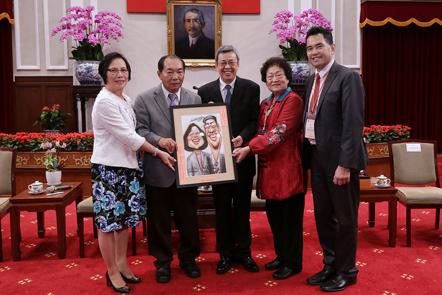 訪賓一行由僑務委員會副委員長呂元榮陪同,前來總統府拜會副總統。