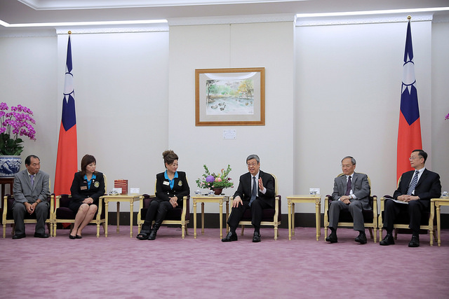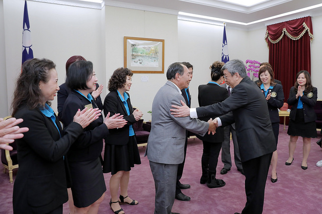 訪賓一行由團長孫華翊率領,僑務委員會委員長吳新興陪同,前來總統府拜會副總統。