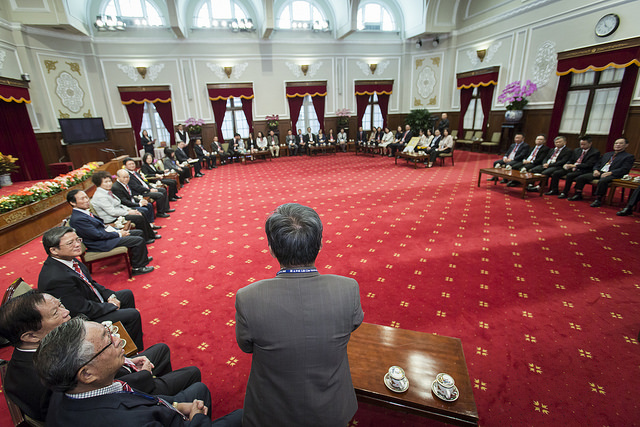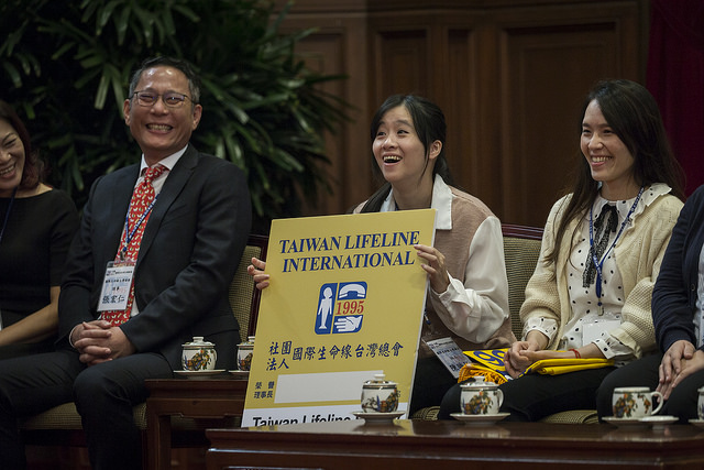 訪賓一行由社團法人國際生命線臺灣總會理事長黃敏偉率領,衛生福利部次長呂寶靜陪同,前來總統府晉見總統。