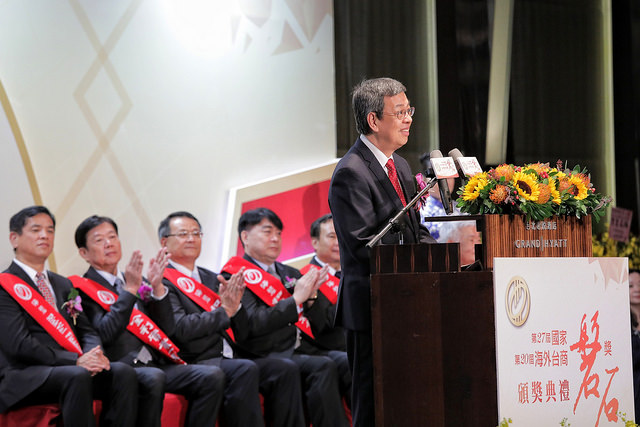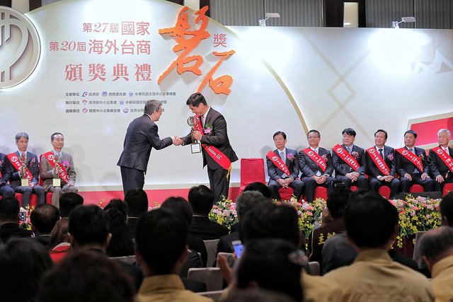 副總統說,在臺灣經濟發展的過程中,中小企業一直扮演非常關鍵的角色,不但為臺灣打造「快速靈敏、創新求變」的產業特性,也為我國提供大量的就業機會,更是維持社會安定的關鍵力量。他也感謝所有在海外奮鬥的臺商企業,在面對語言、文化、資源、法規等諸多困境與挑戰下,都能在海外經營事業有成,並對臺灣或僑居地國家社會有相當貢獻,堪稱海外臺商企業之標竿典範。他向大家致上最高敬意和謝意。