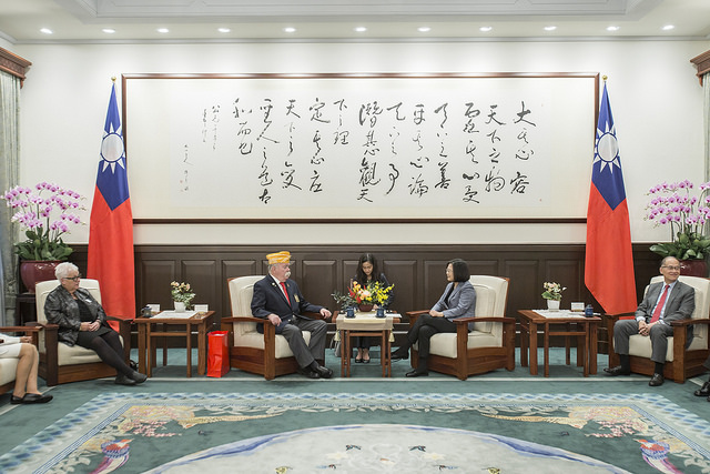 訪賓一行由國軍退除役官兵輔導委員會主任委員邱國正陪同,前來總統府晉見總統,國家安全會議秘書長李大維也在座。