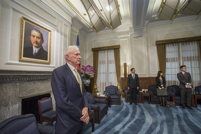 訪賓一行尚包括美國國務院亞太局臺灣協調處處長何樂進(Jim Heller)等,由外交部長吳釗燮、「美國在臺協會」處長酈英傑(William Brent Christensen)陪同,前來總統府晉見總統,國家安全會議秘書長李大維也在座。