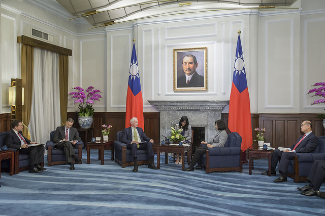 蔡英文總統今(5)日上午接見「美國在臺協會(AIT)」主席莫健(James Moriarty)一行,強調政府透過新南向計畫,以互惠的合作方式,強化與東南亞及南亞國家的關係,也期待美國及其他國家持續與臺灣攜手合作,共同為印太區域打造一個更加穩定和繁榮的未來。