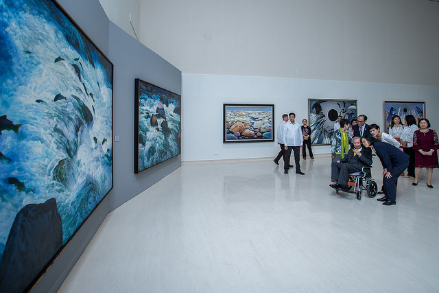 總統提及,總統府有個「虹廳」,佈置簡單,但也是最有藝術氣氛的地方,很大的空間放了林老師的兩部作品─「國鳥駕到」與「天佑花蓮」。「虹廳」原放置許多藝術作品,但這兩幅畫進入後,發現霸氣到容不下其他藝術品,這些其它藝術品即移至其他廳室,這個空間變成了林惺嶽老師專屬的展覽室。在臺灣,很少人有資格像林惺嶽老師一樣,作品擁有一個完整的空間,不會與他人共享。