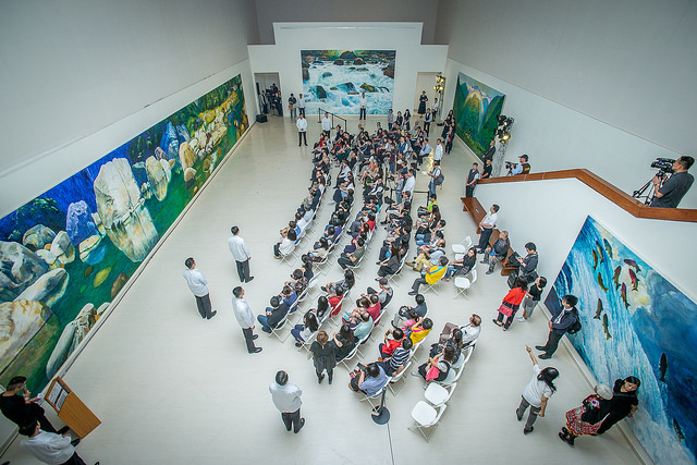 總統致詞時表示, 她記得在2012年選舉結束後,林老師鼓勵她再站起來,不要失志,讓她感到非常感動。2013年,當時林老師有一個名為《臺灣風土的魅力》的展覽,很高興5年之後的今天,又聚在這裡欣賞林老師的畫作,她也謝謝林老師的邀請。