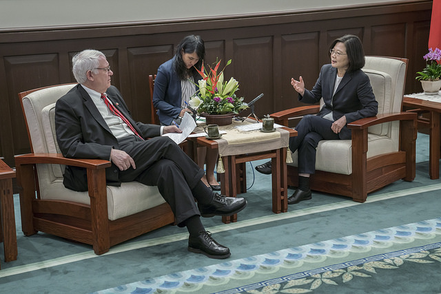 訪賓一行包括「戰略暨國際研究中心」會長兼執行長何慕理(John Hamre)及主任張克斯(Christopher Johnson)等,由外交部次長徐斯儉陪同,前來總統府晉見總統,國家安全會議秘書長李大維及諮詢委員陶儀芬也在座。