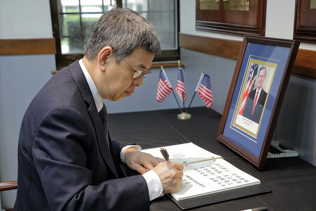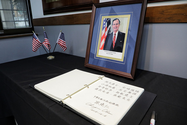 副總統赴AIT題字悼念美國老布希前總統