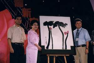 副總統致詞後,並協助主辦單位進行義賣活動,為受虐兒、喜憨兒籌募善款。