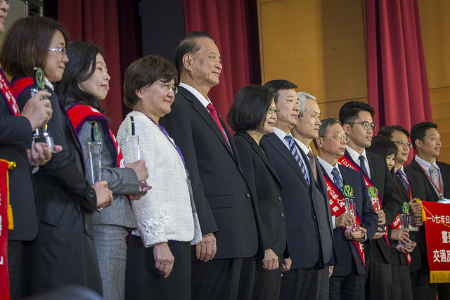 在團體獎的部分,總統指出,衛福部中央健保署的團隊建置了健保醫療資訊雲端查詢系統,讓醫療更精準,也讓病人權益更有保障;臺東縣政府交通及觀光發展處團隊,用運動觀光推動旅遊,非常有創意也非常值得肯定;內政部地政司的團隊,推動不動產實價登錄制度,提升房市透明度,對落實居住正義有非常大的貢獻,此外,農委會林務局的嘉義林區管理處團隊,運用高科技器材掃蕩危害山林者,對於維護國有財產有非常大的幫助。