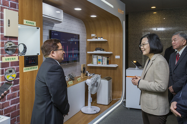 總統抵達後,首先在經濟部長沈榮津及台灣電力公司董事長楊偉甫陪同下,視察智慧電網展示場與電力調度中心,了解台電運作的環境設備與現況。