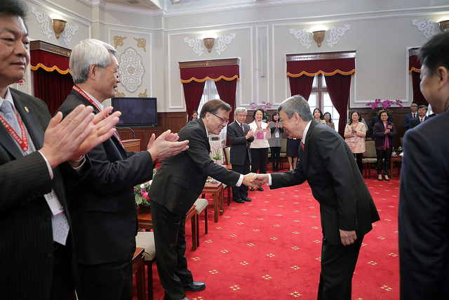 獲獎單位一行由台灣永續關懷協會理事長張清芳率領,內政部次長陳宗彥陪同,前來總統府拜會副總統。