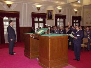 月會是於上午十時在總統府大禮堂舉行,首先舉行宣誓典禮,宣誓人駐薩爾瓦多共和國特命全權大使侯平福在總統監誓下,面對國旗、國父遺像,高舉右手,宣讀誓詞:余誓以至誠,恪遵國家法令,盡忠職守,報效國家,不妄費公帑,不濫用人員,不營私舞弊,不受授賄賂,如違誓言,願受最嚴厲之處罰。儀式莊嚴隆重。