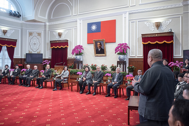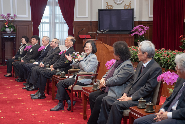 模範公務人員代表一行由考試院長伍錦霖、行政院副院長施俊吉、考試院秘書長李繼玄、銓敘部長周弘憲及行政院人事行政總處人事長施能傑等陪同,前來總統府晉見總統,總統府秘書長陳菊也在座。
