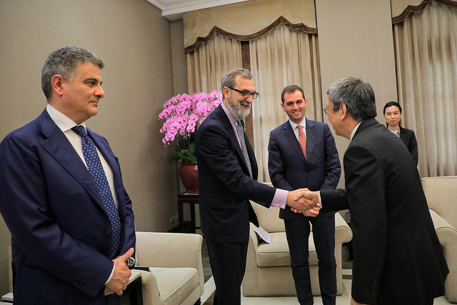 副總統指出,近年臺義兩國在經濟、貿易、文化、科技等方面的實質關係有良好的推動及發展。義大利為我對歐貿易第五大國,2017年臺義雙邊貿易額達46億美元,而我國在義國投資的臺商約60家,投資總額達7億美元,雙邊在多項領域深化合作與交流;他相信,只要秉持開放的態度與平等互惠的原則,持續推動兩國友好合作關係,一定可以創造雙贏的局面。