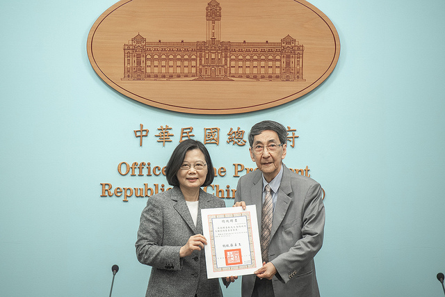 最後,總統表示,民主和人權的發展,將持續帶領臺灣走向世界。「新的一年,我們一起加油。」她也親頒委員聘書,由黃默教授代表接受。