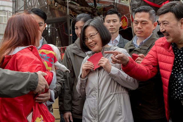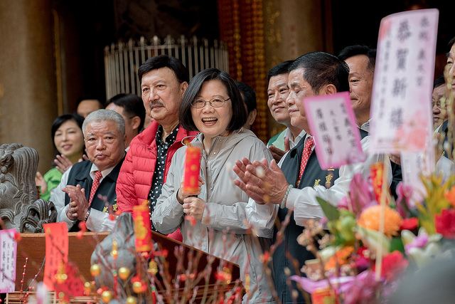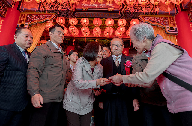 今天是己亥年正月初一,蔡英文總統今(5)日分別前往臺北市、新北市、桃園市及新竹市等當地著名宮廟祈福參拜並發送福袋,眾多民眾排隊領取,期盼從總統手中獲得新春好彩頭。