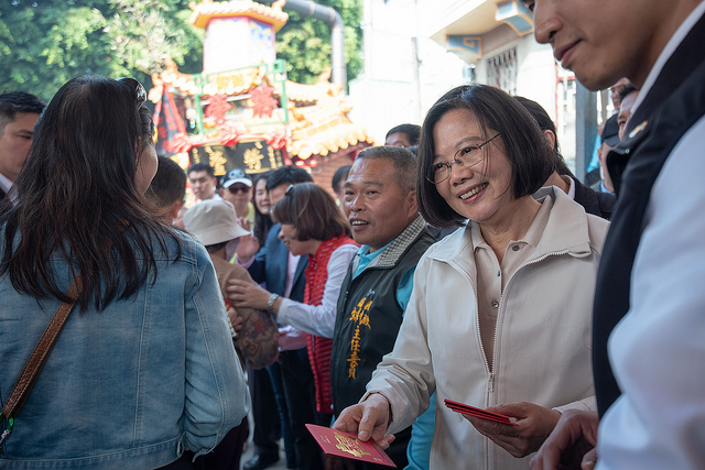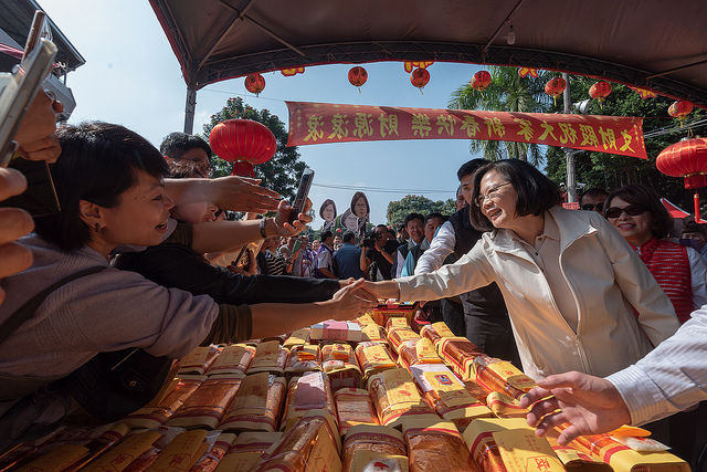今(6)日是農曆大年初二,蔡英文總統分別前往雲林、嘉義、臺南及高雄等當地著名宮廟祈福參拜並發送新春福袋,排隊領取福袋的民眾相當踴躍,有的扶老攜幼,有的精心打扮,都是為了向總統表達支持,並在新春期間從總統手中討個吉祥,現場氣氛相當熱鬧歡愉。