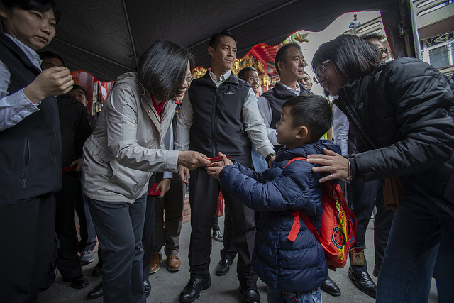 今(8)日是農曆大年初四,蔡英文總統先後前往臺中、苗栗及新竹等當地著名宮廟參拜,並發送豬年新春福袋,向民眾拜年。