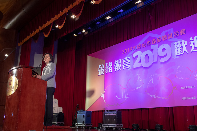 蔡英文總統今(11)日上午出席「2019大陸台商春節聯誼活動」時表示,政府為因應全球經貿局勢的變化,積極擴大內需、全力協助台商回臺投資,同時也積極朝行銷臺灣、全球佈局的方向來努力。談及兩岸關係,總統也強調,身為國際社會負責任的一員,臺灣會致力維護兩岸關係的和平與穩定,她也期盼區域內所有的參與者,都能夠負起維護區域和平穩定的責任。