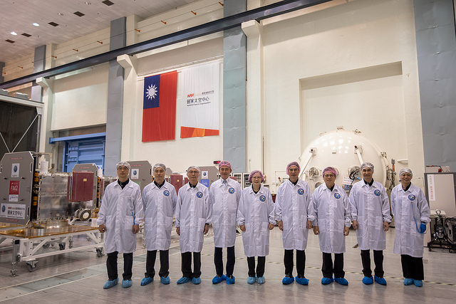 隨後,總統穿著無塵衣前往視察衛星整合測試廠房,並頒發「衛星合格證明」,由林俊良主任代表接受。包括科技部長陳良基、立法院黨團總召柯建銘、新竹市長林智堅、國家實驗研究院長王永和及國家太空中心福衛七號計畫主持人朱崇惠等亦出席是項行程。