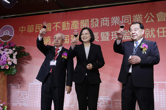 蔡英文總統今(23)日上午出席「中華民國不動產開發商業同業公會全國聯合會第八屆理事長暨理監事就任典禮」,說明政府在都市更新等議題上的努力,也期勉「不動產開發公會全聯會」繼續成為政府與民間意見溝通的關鍵協調者。