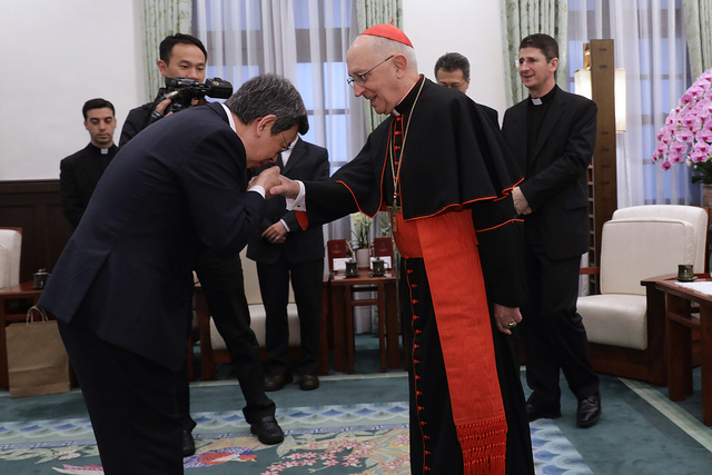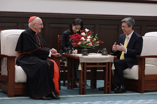 陳建仁副總統今(28)日下午接見教廷「萬民福音部」部長費洛尼(Card. Fernando Filoni)樞機主教一行時表示,臺灣願意協助教廷共同促進世界各國的宗教自由,讓所有人都能免除宗教迫害的恐懼,擁有真正的信仰自由。