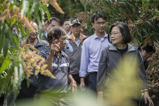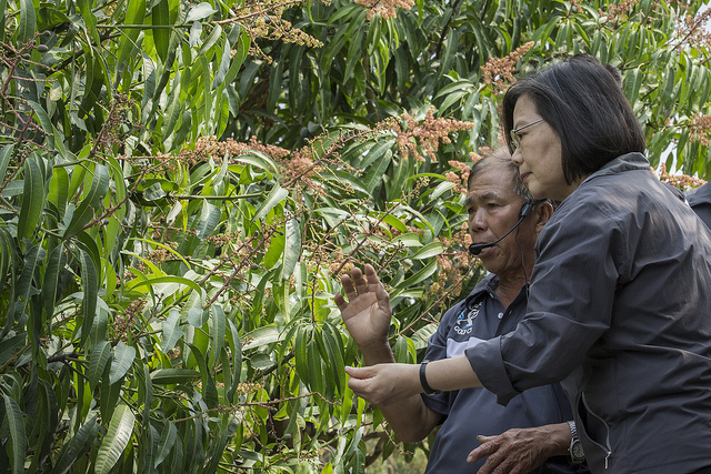 總統說,她也去參觀了「玉井果園」的棗子和「南化果園」的芒果。現在因為全球暖化和暖冬的因素,加上天災比較少,對於農產品價格的挑戰非常大。所以這幾年農委會與外貿協會非常努力的向國外市場拓展行銷,加上地方政府一起努力,希望聯手建構系統性的國外行銷體系,變成常態性的銷售管道。使農產品不是因為產量過多而外銷,而是因為本來就有常態性的國際行銷管道,也有足夠的需求量來吸納我們的農產品。