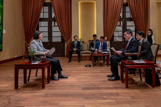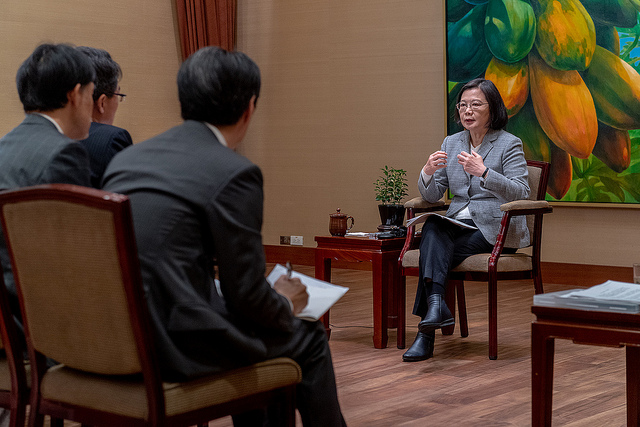 蔡英文總統日前接受「日本產業經濟新聞社」專訪,針對兩岸關係、臺美關係、臺日關係等議題,回應媒體提問。