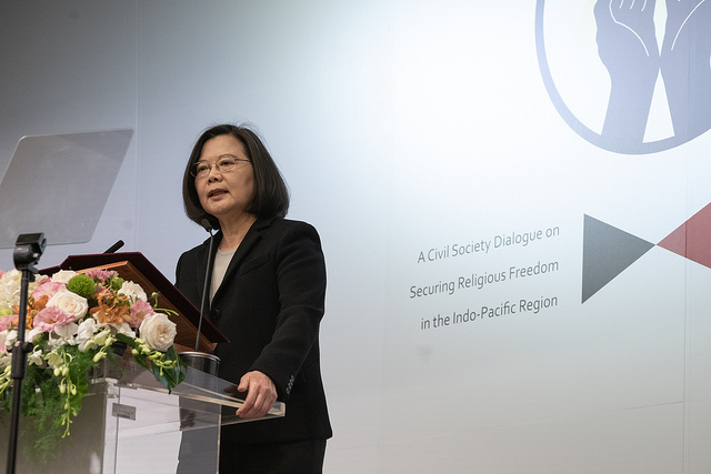 蔡英文總統今(11)日上午出席「印太地區保衛宗教自由公民社會對話」開幕典禮時表示,國家不應干涉控制宗教,同時政府也應營造包容接納的環境,尊重少數族群及多元文化。她也強調,臺灣會持續努力,加強與全世界志同道合的朋友們合作,致力打造一個免於擔憂因宗教或種族不同而處於恐懼、迫害甚至流亡的世界。
