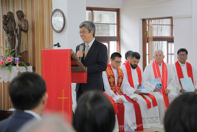 副總統表示,白冷會一直致力於天主教花蓮教區,包括花蓮縣、臺東縣的宣教工作,自從錫質平神父於1953年設立臺灣區會以來,已經超過65年,除了陸續在臺東建立50多座教堂,搭起臺東、知本、東河、關山、海端、金鋒、達仁與蘭嶼各地教會信仰基礎外,還創辦了天主教培質院、天主教聖母醫院、公東高工等社會、醫療及教育事業,對臺東地區的貢獻極為顯著,他要代表政府表達十二萬分的感謝。