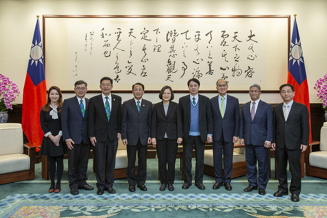 訪賓一行由馬偕醫院董事長胡志疆率領,外交部次長徐斯儉陪同,前來總統府晉見總統,國家安全會議秘書長李大維也在座。