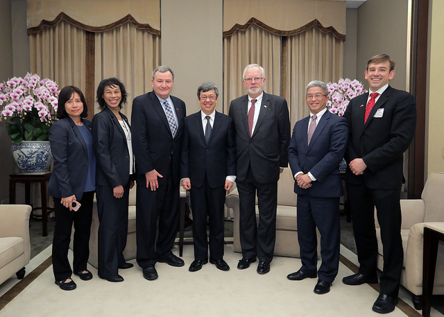 最後,副總統指出,美國是臺灣最重要的戰略及經濟夥伴,過去兩年多來,臺美夥伴關係不斷提升,今年是《臺灣關係法》立法四十週年,期待雙方繼續密切合作,持續強化夥伴關係,擴大臺美互惠雙贏的成果。他也再次感謝艾江山大使及施大偉(David Shear)大使多年來支持臺灣,並祝福訪團行程圓滿順利,未來有機會常來臺灣。