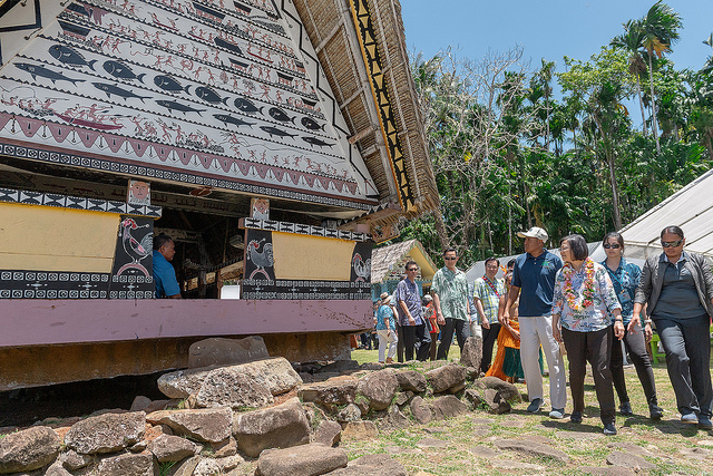 蔡英文總統「海洋民主之旅」今(23)日下午(臺北時間23日下午)參觀艾萊州男人會館及帛琉國家博物館,體驗帛琉南島文化。