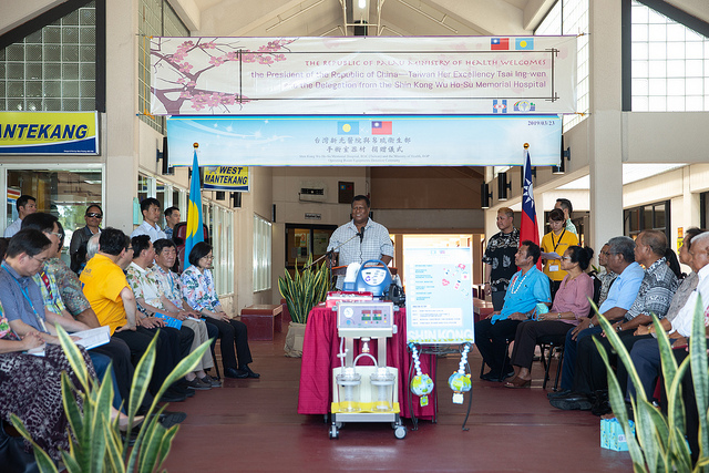 總統抵達帛琉國家醫院後,首先由臺灣醫療計畫駐帛琉協調人許采綾及帛琉國家醫院國際協調人Omengkar Damien Wally簡介捐贈緣由。捐贈儀式開始前,新光醫院院務顧問楊國卿致詞表示,2007年9月,當時擔任衛生署長的新光醫院侯勝茂院長,在帛琉主持第一屆「臺灣與太平洋友邦醫療衛生高峰論壇」,雷蒙傑索(Tommy E. Remengesau, Jr.)總統並與當時身為新光醫院副院長的他,共同見證新光醫院與帛琉正式開啟兩國醫療合作。
