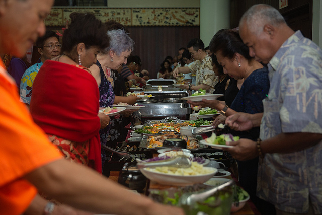 蔡總統說,除了有遠大的目標,她也要跟大家分享今晚答宴的美食,菜色大多數是由老爺酒店提供,不過帛琉樹薯燻鮪魚佐台灣麵線以及芋香椰糖乳酪蛋糕這兩道菜,是由來自「帛琉社區學院」、接受臺灣桃禧飯店主廚培訓的帛琉朋友們所供應。
