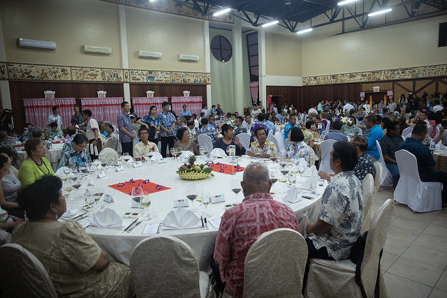 答宴開始,蔡總統與所有賓客首先欣賞帛國學生進行開場演出。隨後,在帛琉第一夫人雷黛比(Debbie Remengesau) 等人見證下,蔡總統也簽署「帛琉誓詞」,象徵一起維護帛琉環境的立場與決心。