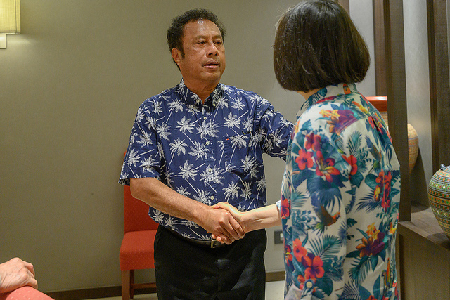蔡英文總統「海洋民主之旅」於今(24)日上午(臺北時間24日上午)與雷蒙傑索(Tommy E. Remengesau, Jr.)總統及傳統領袖早餐敘,感謝帛琉政府和人民的熱情款待,臺帛邦誼將更加彌堅永固,共同為雙邊合作開啟新頁。