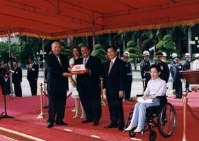 貴我兩國雖然地理上相距遙遠,但是合作關係卻非常密切,尤其雙方經貿活動多年來在兩國政府積極鼓勵下日趨開展,目前尼國已是我國廠商在中美洲投資規模和數額方面都是最高的友邦,而且是我廠商拓展北美市場的主要據點。臺商前往尼加拉瓜投資成果豐碩,且創造尼國就業機會超過兩萬人,本人去年八月中旬訪問尼加拉瓜時,曾目睹此一互惠互利的合作盛況,深感欣慰。本人也希望,未來兩國在此密切友好的深厚基礎上,透過電子網路資訊的現代化設備,加速雙邊政治、經貿、技術、社會及文化等各方面的交流,共謀增進兩國人民的福祉。