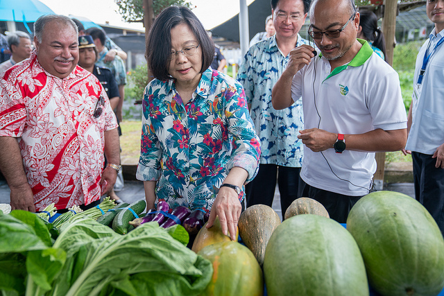 蔡英文總統「海洋民主之旅」於今(25)日下午(臺北時間25日午間)參加駐諾魯技術團「臺灣農畜教育中心」開幕典禮,肯定技術團把臺灣的農業技術帶來諾魯,創造出許多成果,並盼未來持續將食農教育經驗跟友邦好朋友分享,一起成長、一起進步。