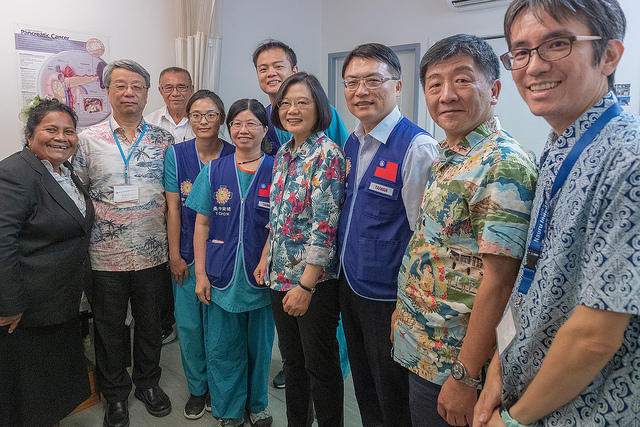 稍早,蔡總統也在諾魯總統幕僚長Peter Jacob及新聞處處長兼諾魯博物館館長Joanna Olsson等人陪同下,前往諾魯博物館參觀;並赴臺中榮民總醫院「骨科醫療義診團」慰勉醫療團團員,感謝他們為臺諾醫療合作的付出與努力。