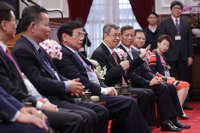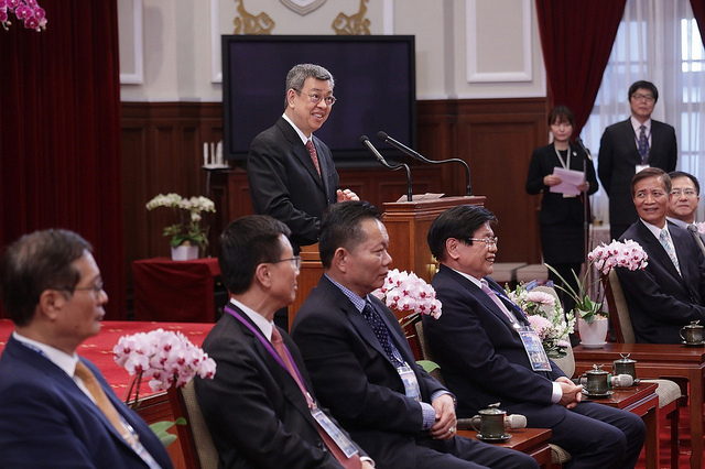 副總統致詞時表示,今天,非常高興在總統府和來自亞洲各地的臺商伙伴們見面。蔡總統目前正在友邦國家拚外交,無法親自接見大家,所以一定要他代表向在座所有的臺商先進致意,並歡迎回國訪問;總統也表示,臺商都是僑界的菁英,大家對中華民國臺灣的關懷和愛護,她感激在心,也要他跟大家致上最高的敬意和謝意。