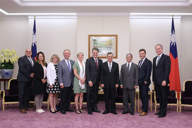 訪團一行由外交部次長徐斯儉及加拿大駐臺北貿易辦事處政經暨公共事務處處長馬孟凱(Michael McCulloch)陪同,前來總統府拜會副總統。