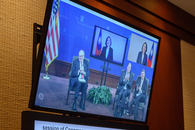 蔡英文總統「海洋民主之旅」於今(27)日上午(臺北時間28日凌晨)在夏威夷下榻飯店與華府智庫「傳統基金會」(The Heritage Foundation)視訊會議。