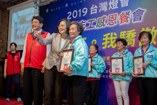 蔡英文總統今(30)日下午出席「2019臺灣燈會在屏東志工感恩餐會」,肯定屏東縣長潘孟安及縣府執政團隊的所有同仁,也感謝燈會志工們的熱情與投入,讓世界都看到臺灣。
