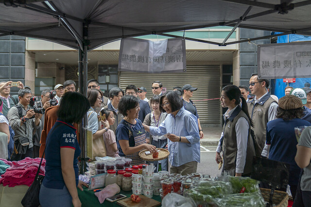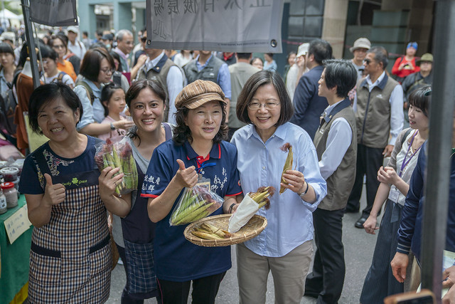 總統說,在氣候暖化的過程中,有一些農業受到衝擊,政府也會拿出最大的力量來協助,一起度過這個關鍵時刻。她歡迎臺北或是附近地區的民眾,來參觀這個市集,給農友們打氣加油,「他們的產品確實是非常好吃」。